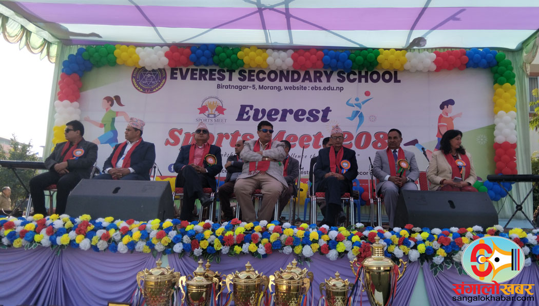 विराटनगर । विराटनगर-५ स्थित एभरेष्ट माध्यमिक विद्यालयमा स्पोर्ट्स मिट सुरु भएको छ । आज विराटनगर महानगरपालिकाका मेयर नागेश कोइरालाले उद्‌घाटन गरेसँगै स्पोर्ट्स मिट २०८१ सुरु भएको हो ।