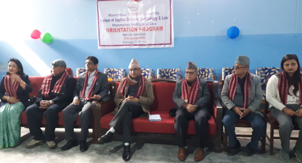 विश्वविद्यालयले कानुन अध्ययन गर्न भर्ना भएका बिबिए एलएलबी तहका विद्यार्थीहरू र उनीहरूका अभिभावकलाई अभिभुखिकरण गराएको छ । मनमोहन प्राविधिक विश्वविद्यालयका उपकुलपति डा. सुवासश्री पोखरेलले समय सान्दर्भिक प्रविधिले दक्ष र आत्मनिर्भर कानुन व्यावसायी उत्पादन गर्न देशमै पहिलो पटक पाँच वर्षे बिबिए एलएलबीको पाठ्यक्रम तयार गरेर पढाइ सुरु गरेको जानकारी बताए ।