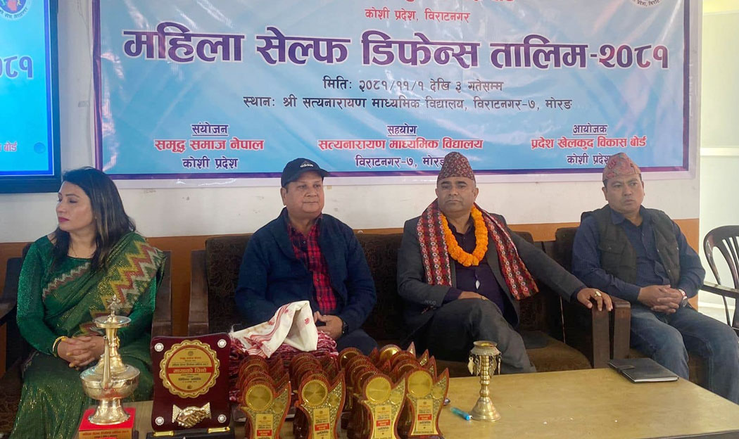 विराटनगर । विराटनगरमा किशोरीहरूका लागि आत्मरक्षा तालिम सञ्चालन गरिएको छ । कोशी प्रदेश खेलकुद विकास बोर्डको आयोजना तथा समृद्ध समाज नेपालको संयोजनमा तीन दिने ‘सेल्फ-डिफेन्स’ तालिम सञ्चालन गरिएको हो ।
