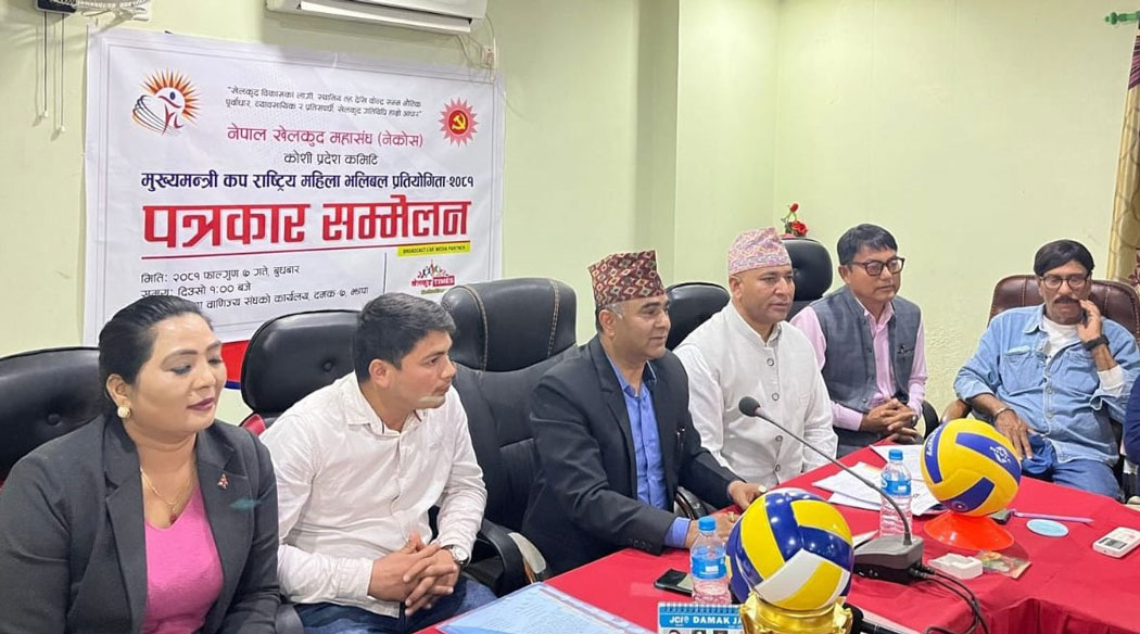 विराटनगर । नेपाल खेलकुद महासङ्घ कोशी प्रदेश कमिटीको आयोजना मुख्यमन्त्री कप राष्ट्रिय महिला भलिबल प्रतियोगिता हुने भएको छ । प्रतियोगिता फागुन ११ देखि १६ गतेसम्म झापाको दमकमा हुने भएको हो ।