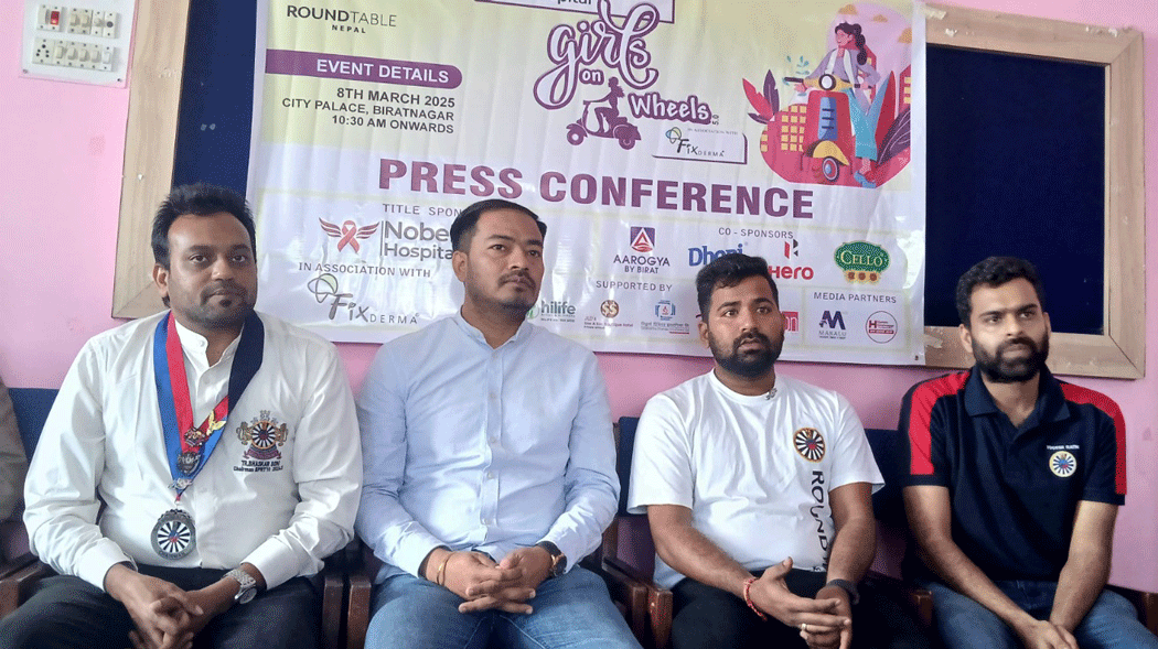 विराटनगर । विराटनगरमा ‘गर्ल्स अन ह्विल’ प्रतियोगिता हुने भएको छ । विराटनगर प्राइम राउन्ट टेबल-१० ले नारी दिवसको अवसर पारेर प्रतियोगिता गर्न लागेको हो ।