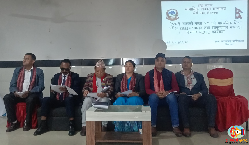 विराटनगर । कोशी प्रदेशका १४ वटै जिल्लाबाट माध्यमिक शिक्षा परीक्षा (एसइई) मा करिब ९० हजार परीक्षार्थी सहभागि हुने भएका छन् । सामाजिक विकास मन्त्रालय कोशी प्रदेशले आज विराटनगर पत्रकार सम्मेलन गर्दै परीक्षामा सहभागि हुने परिक्षार्थी र तयारीका विषयमा जानकारी गराएको हो ।