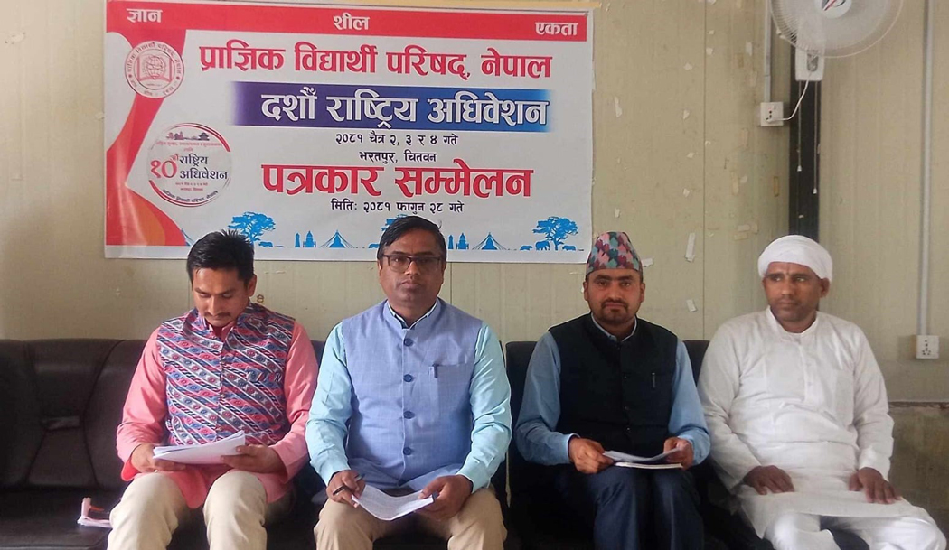 विराटनगर । प्राज्ञिक विद्यार्थी परिषद् नेपालको दशौँ राष्ट्रिय अधिवेशनको सम्पूर्ण तयारी पूरा भएको छ । आज चितवनमा पत्रकार सम्मेलन गर्दै आगामी चैत्र २ गतेबाट सुरु हुने अधिवेशनको सम्पूर्ण तयारी पूरा भएको परिषद्ले जनाएको हो ।
