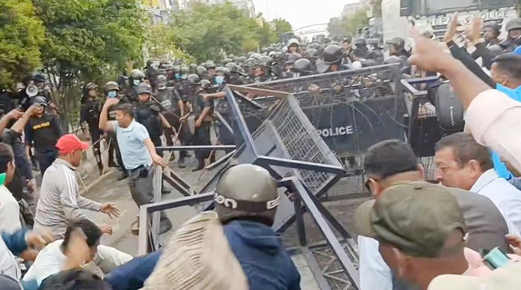 विराटनगर । शिक्षा ऐन जारी गर्नुपर्ने लगायतका मागसहित गत चैत २० गतेबाट आन्दोलनरत शिक्षक र प्रहरीबीच झडप भएको छ । आज नयाँबानेश्वर सडक खण्डमा भेला भएर प्रदर्शनमा उत्रिएका शिक्षकहरूले निषेधित क्षेत्र तोड्न खोजेपछि झडप भएको हो । झडपमा १५ जना शिक्षक घाइते भएका छन् ।