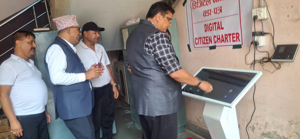 विराटनगर । विराटनगर महानगरपालिकाले डिजिटल नागरिक बडापत्र सञ्चालनमा ल्याएको छ । आज मेयर नागेश कोइरालाले महानगर परिसरमा स्थापना गरिएको डिजिटल नागरिक बडापत्रको शुभारम्भ गरे ।