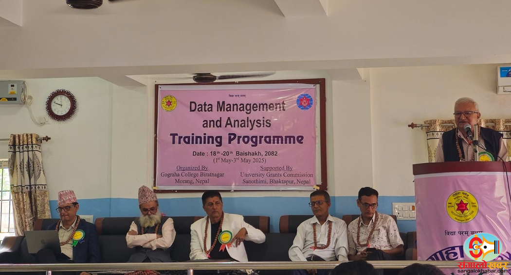 विराटनगर । गोग्राहा कलेज विराटनगरको आयोजनामा ‘डाटा व्यवस्थापन तथा विश्लेषण तालिम’ सुरु भएको छ । उच्च शिक्षामा गुणस्तरीय सुधार र वैज्ञानिक अध्ययन प्रणालीलाई सशक्त बनाउने उद्देश्यले तालिम सुरु गरिएको हो ।