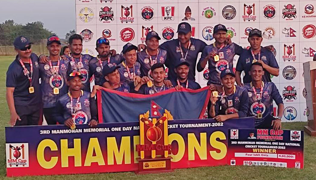 विराटनगर । नेपाल पुलिस क्लबले तेस्रो संस्करणको मनमोहन स्मृति एकदिवसीय क्रिकेट प्रतियोगिताको उपाधि जितेको छ ।