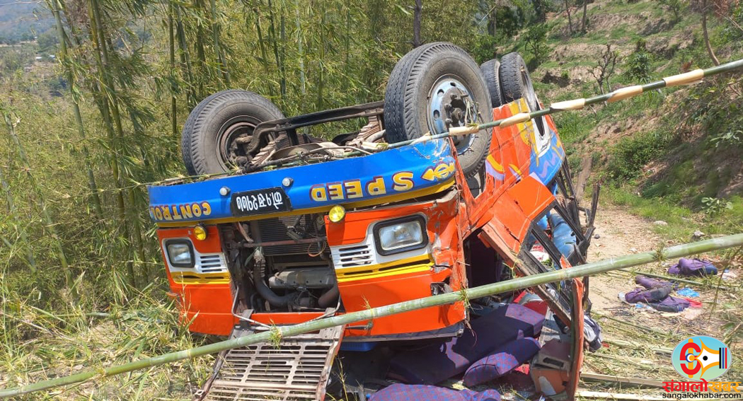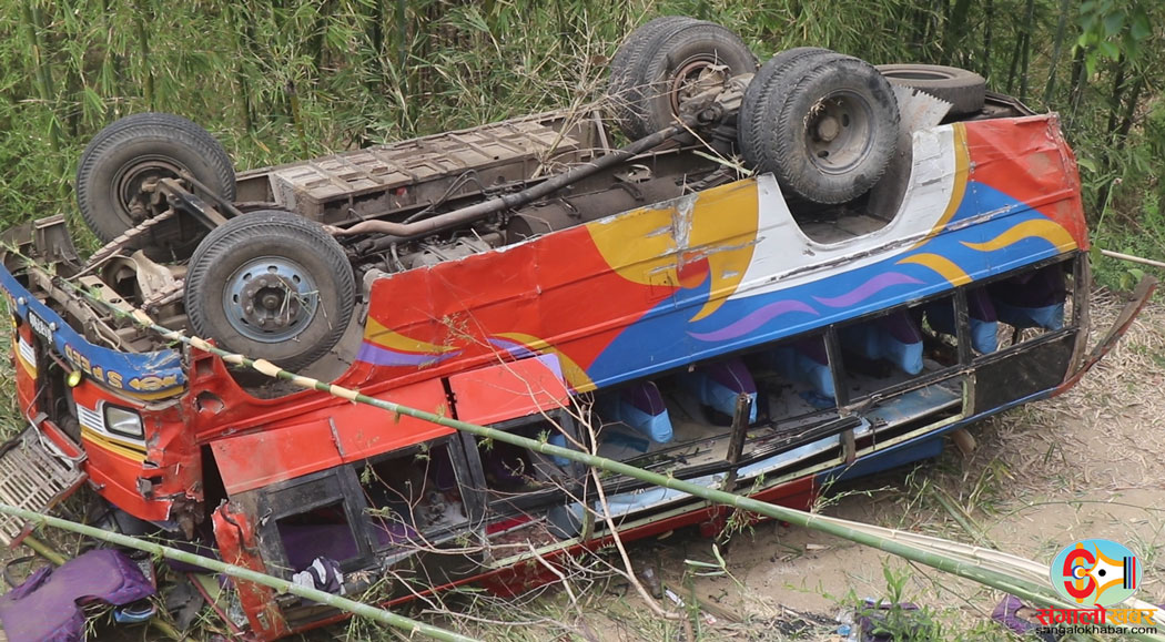 उकालो बाटोमा एक्कासि ब्रेक र स्टेरिङ फेल हुँदा पछाडि सरेर बस करिब ५० मिटर तल खसेको छ ।