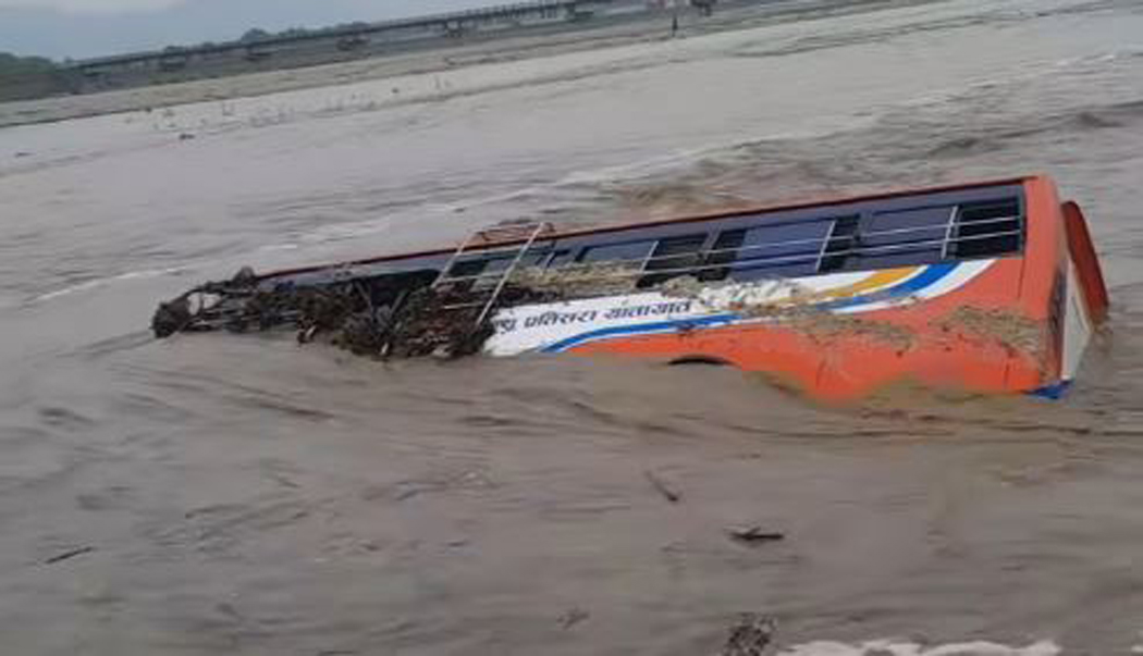 विराटनगर । उदयपुरको चौदण्डीगढी नगरपालिका-५ स्थित त्रियुगा नदीमा आएको बाढीले बस बगाएको छ । उदयपुर प्रहरीका अनुसार जन्ती पुर्याएर फकिँदै गरेको बस बाढीले बगाएको हो ।