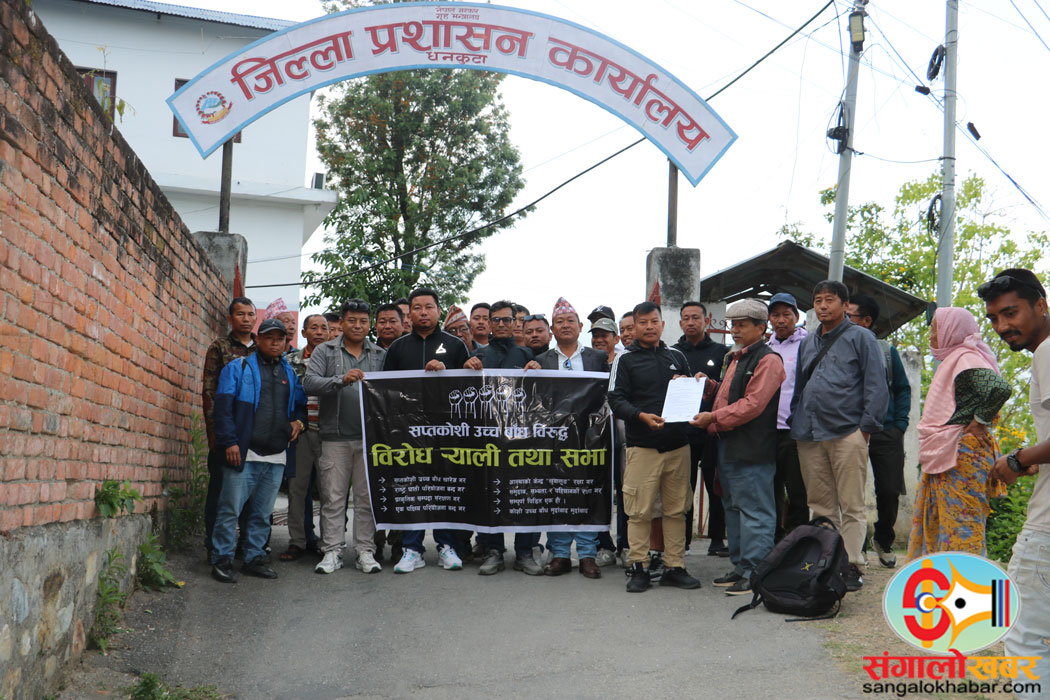 धनकुटा । कोसी उच्च बाँध निर्माण योजना खारेजीको माग गर्दै ज्ञापनपत्र बुझाइएको छ । सप्तकोसी उच्च बाँधविरुद्ध सङ्घर्ष समितिले आज जिल्ला प्रशासन कार्यालय धनकुटामार्फत गृह मन्त्रालय तथा प्रधानमन्त्रीको कार्यालयलाई ज्ञापनपत्र बुझाएको हो ।