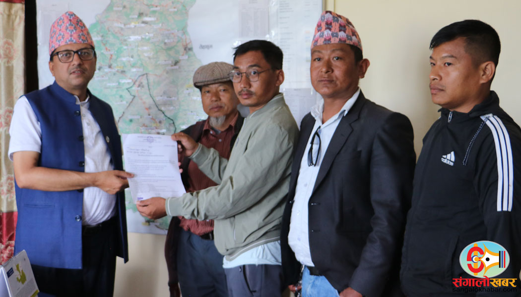 सङ्घर्ष समितिका अध्यक्ष असिम राई लगायतको टिमले सहिदभूमि गाउँपालिका र धनकुटाका प्रमुख जिल्ला अधिकारी टुवराज पोख्रेललाई ज्ञापनपत्र बुझाए ।