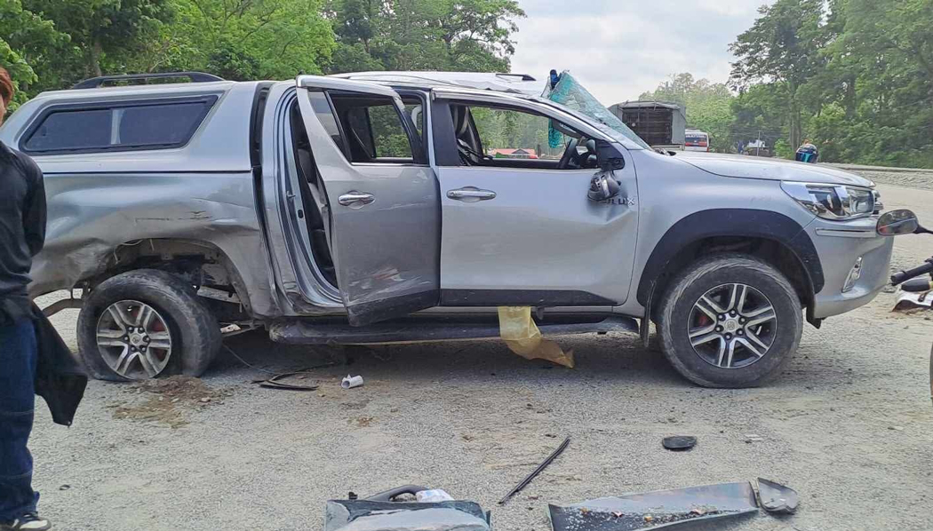 विराटनगर । मोरङको कानेपोखरीमा कोशी प्रदेश सांसद सवार गाडीलाई प्रहरी नायब उपरीक्षक डीएसपी चढेको गाडीले ठक्कर दिएको छ । आज दिउँसो २ बजे पश्चिमबाट पूर्वतर्फ जाँदै गरेको बा ५ च ३५२० नम्बरको गाडीले पूर्वबाट पश्चिमतर्फ आउँदै गरेको बिएइ १४०६ नम्बरको गाडीलाई ठक्कर दिएको हो ।