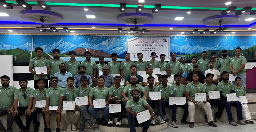 विराटनगर । विराटनगरमा क्रिकेटको शून्य लेभल अम्पायर तथा स्कोरर तालिम सञ्चालन भएको छ । नेपाल क्रिकेट सङ्घको आयोजनामा तीन दिनसम्म सञ्चालन भएको तालिममा कोशीका ११ जिल्लाबाट ३५ जना सहभागि थिए ।