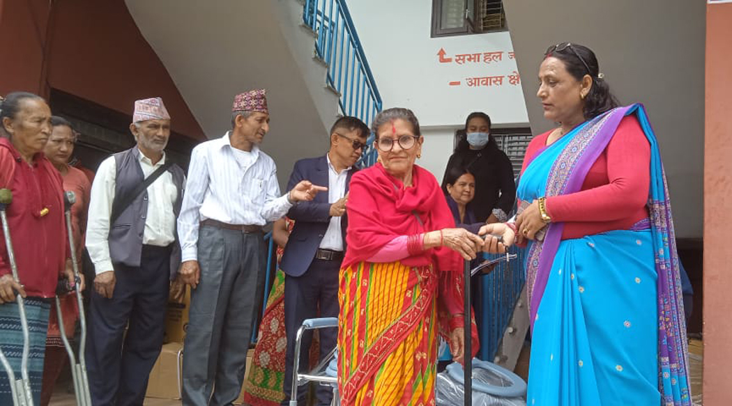 धनकुटा । धनकुटा नगरपालिकाले अपाङ्गता भएका व्यक्तिहरूलाई आवश्यक पर्ने सामग्री वितरण गरेको छ । महिला बालबालिका तथा ज्येष्ठ नागरिक उपशाखाद्वारा नगरपालिकामा आज आयोजित कार्यक्रममा सामग्री वितरण गरिएको हो ।