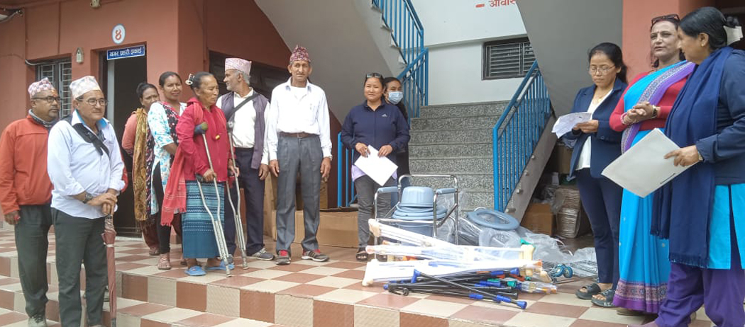 नगरपालिका भित्रका १० वटै वडामा रहेका अपाङ्गता भएका व्यक्तिहरूको आवश्यकताका आधारमा पाङ्ग्रासहितको कमोड कुर्सी १४ थान, लौरो १६ थान र पाँच जोडी बैशाखी वितरण गरिएको छ ।
