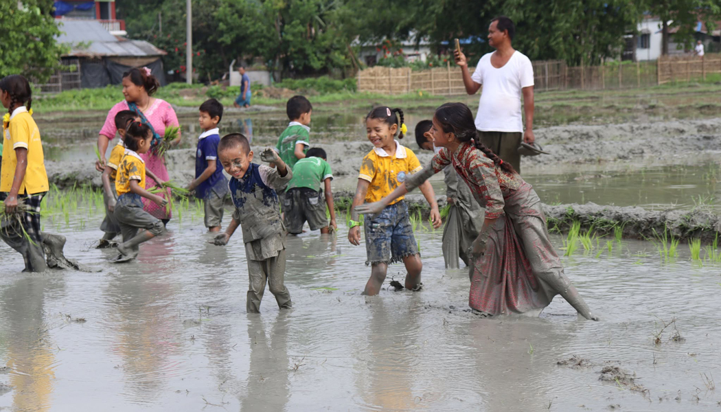 विद्यालयहरूले व्यवहारिक ज्ञान वृद्धिसँगै असार १५ को महत्व र कृषि पेसाको बारेमा जानकारी गराउने उद्देश्यका साथ विद्यार्थीलाई रोपाइँमा सरिक गराएका छन् । मोरङको ग्रामथान गाउँपालिका-३ मंगलहाटमा रहेको ग्रामथान मन्टेश्वरीले एक/दुई कक्षाका बालबालिकाहरूलाई धान दिवसको अवसरमा रोपाइँमा सरिक गराएको छ ।