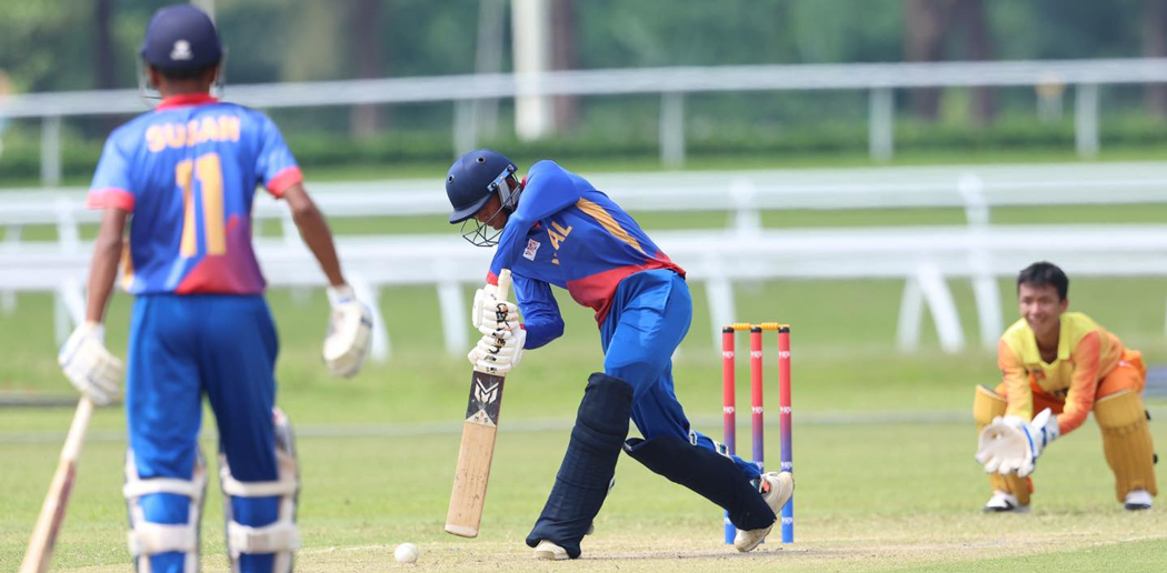 नेपालका लागि रौनक श्रीवास्तवले शतक बनाए । उनले एक सय ३२ बलमा एक सय ६८ रन बनाउँदा जोय थापाले अविजित ६१, सिवान्स बजगाईँ ५४ र सुगम बूढाथोकीले ३५ रन बनाए । भुटानका सञ्जय डोर्जीले तीन र तेन्जिङ लोडे जमत्सोले एक विकेट लिए । भुटानले केहीबेरमा जबाफी ब्याटिङ गर्दैछ ।