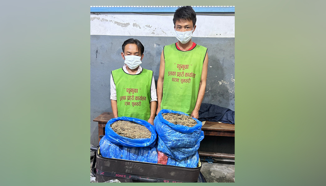 विराटनगर । सुनसरीको धरान उपमहानगरपालिका-१३ निशानेबाट गाँजासहित दुई जना पक्राउ परेका छन् । पक्राउ पर्नेमा भोजपुरको पौवादुम्मा गाउँपालिका-६ का ३६ वर्षीय जीवनराज राई र सोही स्थानका ३१ वर्षीय आरएन राई छन् ।
