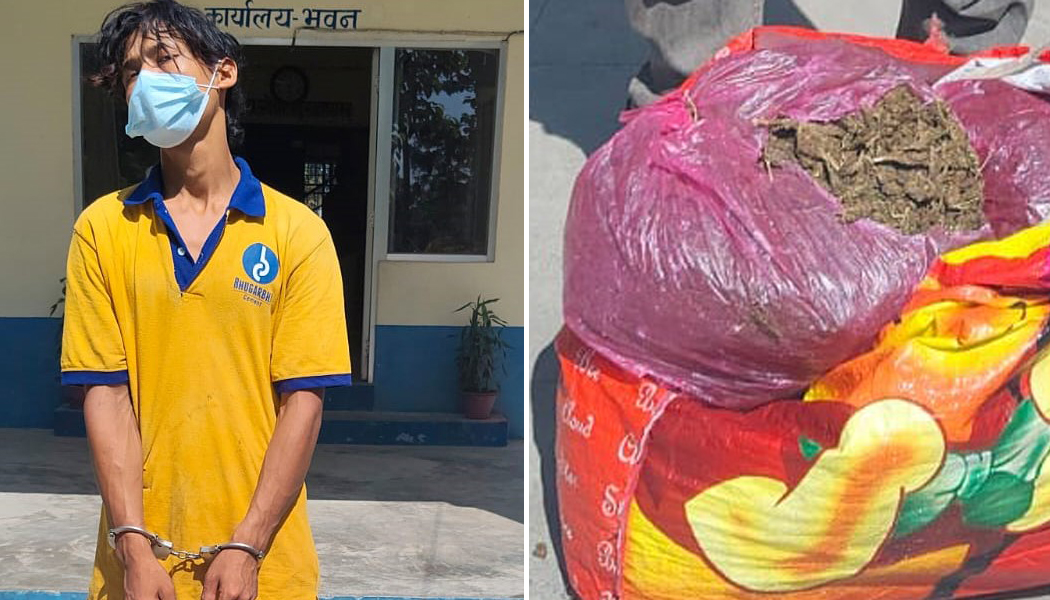 उनले बोकेको जेब्रा झोलाबाट ९ किलो ५ सय ग्राम गाँजा बरामद भएको छ । उनलाई इलाका प्रहरी कार्यालय महेन्द्रनगरमा राखेर आवश्यक अनुसन्धान सुरु गरिएको प्रहरीको भनाइ छ ।