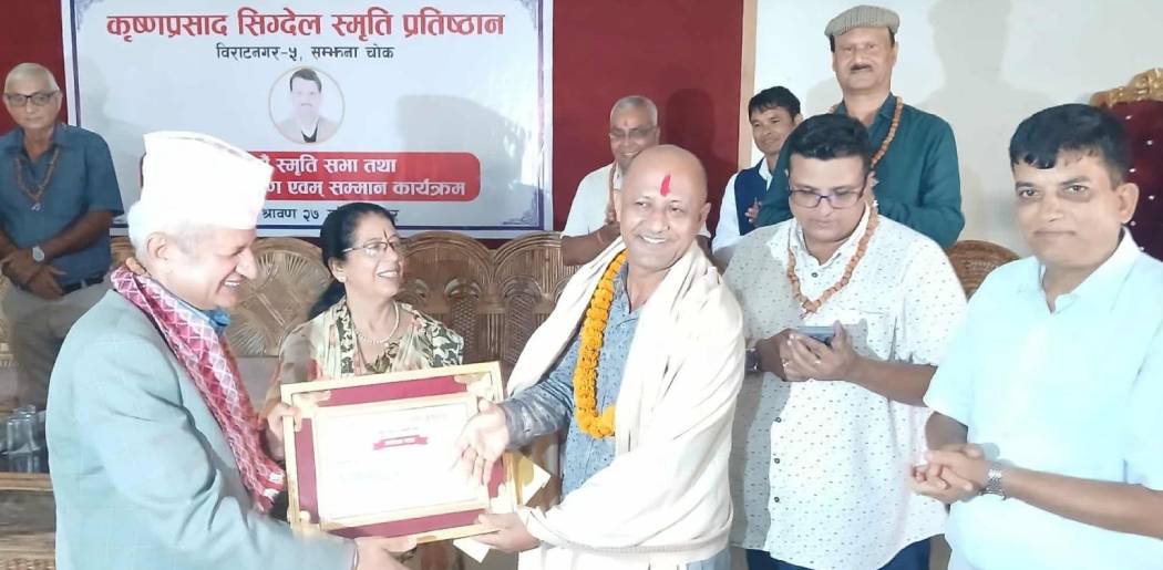 विराटनगर । नेपाल पत्रकार महासंघ मोरङका पूर्वअध्यक्ष महेन्द्र विष्टलाई कृष्णप्रसाद सिग्देल स्मृति पत्रकारिता पुरस्कार प्रदान गरिएको छ । कृष्णप्रसाद सिग्देल स्मृति प्रतिष्ठानद्वारा आज विराटनगरमा आयोजित १६ औँ स्मृतिसभामा नेकपा (एमाले)का उपमहासचिव प्रदीप ज्ञवालीले विष्टलाई २१ हजार रुपैयाँ राशिको पुरस्कार प्रदान गरेका हुन् ।