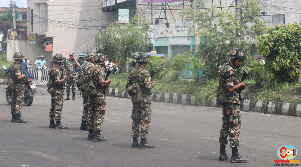 शान्ति सुरक्षाका लागि नेपाली सेनाले सडक तथा टोलटोलमा गस्ती गरिरहेका छन् ।