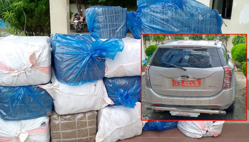 मोरङ प्रहरीका निमित्त प्रवक्ता डीएसपी हस्तबहादुर सुनारका अनुसार प्रदेश १-०२-००१ च १६६६ नम्बरको कारमा चेकजाँच गर्दा १५ बोरामा ५ सय ३८ किलो गाँजा बरामद भएको छ ।
