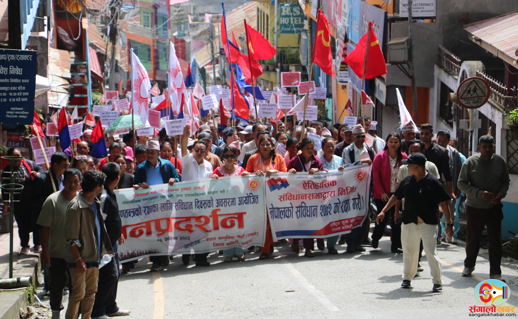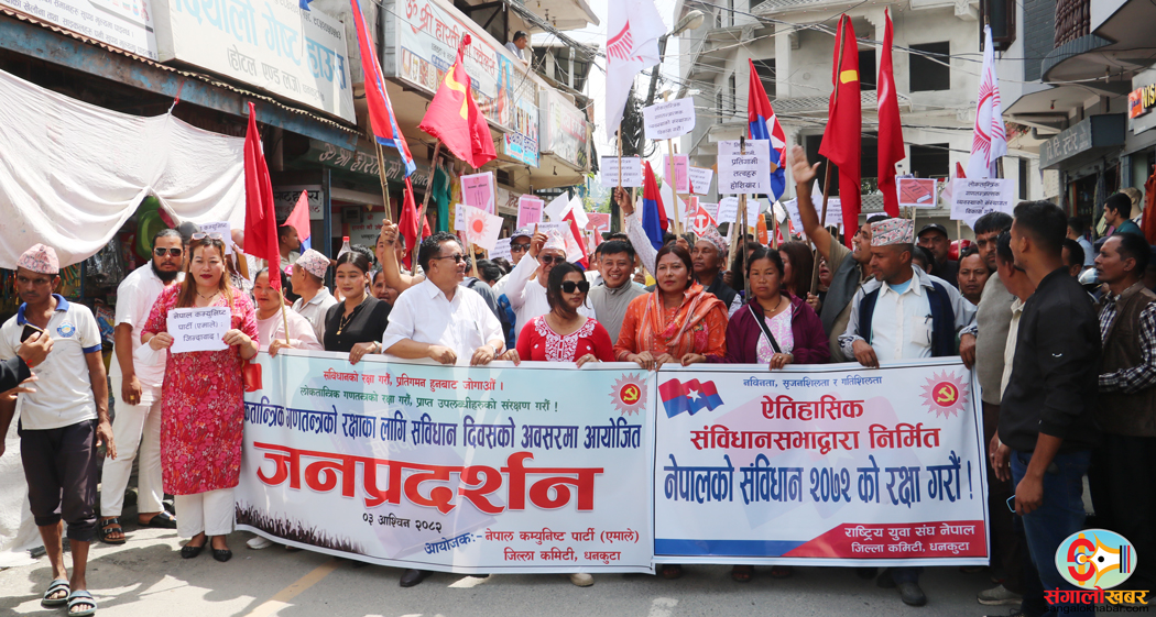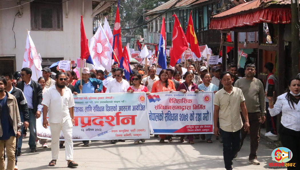 धनकुटा । धनकुटामा नेकपा एमालेले संविधान रक्षाका लागि भन्दै जनप्रदर्शन गरेको छ । लोकतान्त्रिक गणतन्त्रको रक्षाका लागि संविधान दिवसको अवसर पारेर आज जिल्ला कमिटीले जनप्रदर्शन गरेको हो ।