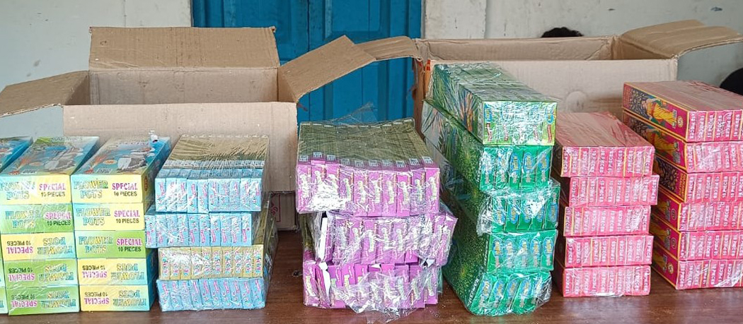 शनिबार चेकजाँचका क्रममा झापाको भद्रपुर नगरपालिका-५ बाट अबैधरूपमा लुकाएर ल्याउँदै गरेको अवस्थामा करिब चार लाख मूल्य बराबरको पटका र झिलिमिली बत्ती बरामद भएको प्रहरीले जनाएको छ ।