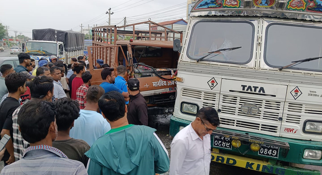 ट्राफिक प्रहरीका अनुसार उत्तरबाट दक्षिणतर्फ आउँदै गरेको को १ ख ३३७४ नम्बरको मिनी ट्रक र सोही दिशातर्फ आउँदै गरेको ना ५ ख ०८४५ नम्बरको ट्याङ्कर एक-आपसमा ठोक्किएका हुन् ।