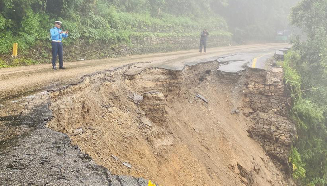 धनकुटा । अविरल वर्षाका कारण धरान-धनकुटा सडक भासिएको छ । आज बिहान ११ बजे साँगुरीगढी गाउँपालिका-६ चारखोले गोलाइमा कोशी लोकमार्गको १० मिटर सडक भासिएको हो ।