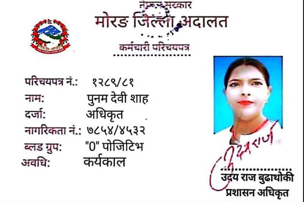 विराटनगर । मोरङ जिल्ला अदालतको नक्कली परिचय पत्र बनाएर ठगी गरेको आरोपमा दुई जना पक्राउ परेका छन् । उनीहरूमाथि सरकारी कार्यालयमा जागिर खुलेको विज्ञापन निकालेर दर्जनौं व्यक्तिमाथि ठगी गरेको आरोप छ ।