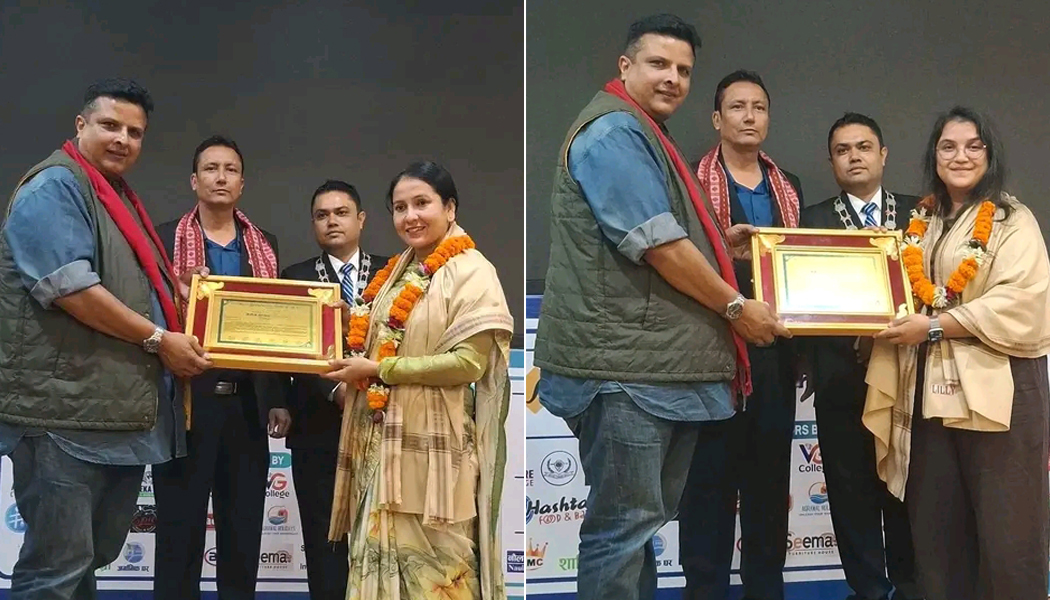 विराटनगर । विराटनगर जेसीजको ‘जेसीज सप्ताह-२०२५’ मा पत्रकार शुशीला पाठक र नोबेल मेडिकल कलेज तथा काठमाडौं मेडिकल कलेजका सञ्चालन सोइना शर्मा सम्मानित भएका छन् ।