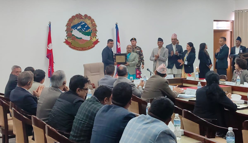 काठमाडौं । श्रम रोजगार तथा सामाजिक सुरक्षा मन्त्रालयअन्तर्गत सामाजिक सुरक्षा कोषले डा सुनिल शर्माको काठमाडौं मेडिकल कलेजलाई सम्मान गरेको छ । सामाजिक सुरक्षामा उत्कृष्ट योगदान पुर्याएको कदर गर्दै आठौँ सामाजिक सुरक्षा दिवसका प्रधानमन्त्री सुशीला कार्कीले सम्मान-पत्र प्रदान गरेकी हुन् ।