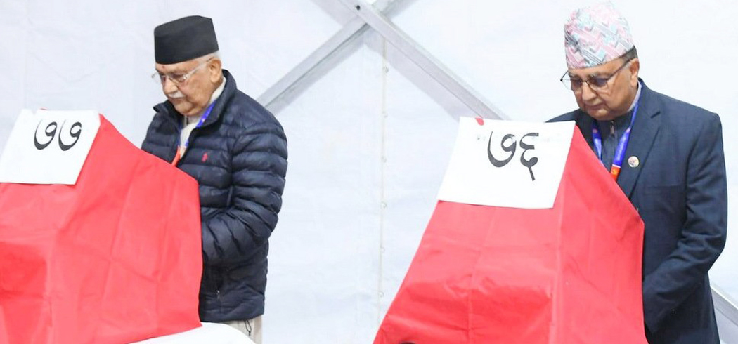 काठमाडौं । नेकपा एमालेको ११ औं महाधिवेशनअन्तर्गत नयाँ नेतृत्व चयनका लागि मतदान सुरु भएको छ । अध्यक्षका उम्मेदवार केपी शर्मा ओली र ईश्वर पोखरेलले मत हालेर मतदान सुरु गरेका हुन् ।
