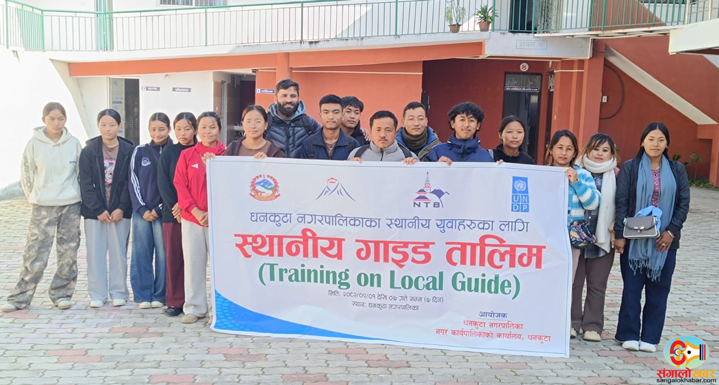 धनकुटा । धनकुटा नगरपालिकाले १५ जना युवालाई स्थानीय टुरिस्ट गाइड तालिम दिएको छ । नेपाल पर्वतीय प्रशिक्षण प्रतिष्ठानसँगको सहकार्यमा स्थानीय पर्यटन प्रबर्द्धन र रोजगारी सृजना गर्ने उद्देश्यले नगरपालिकाले टुरिस्ट गाइड तालिको दिएको हो ।