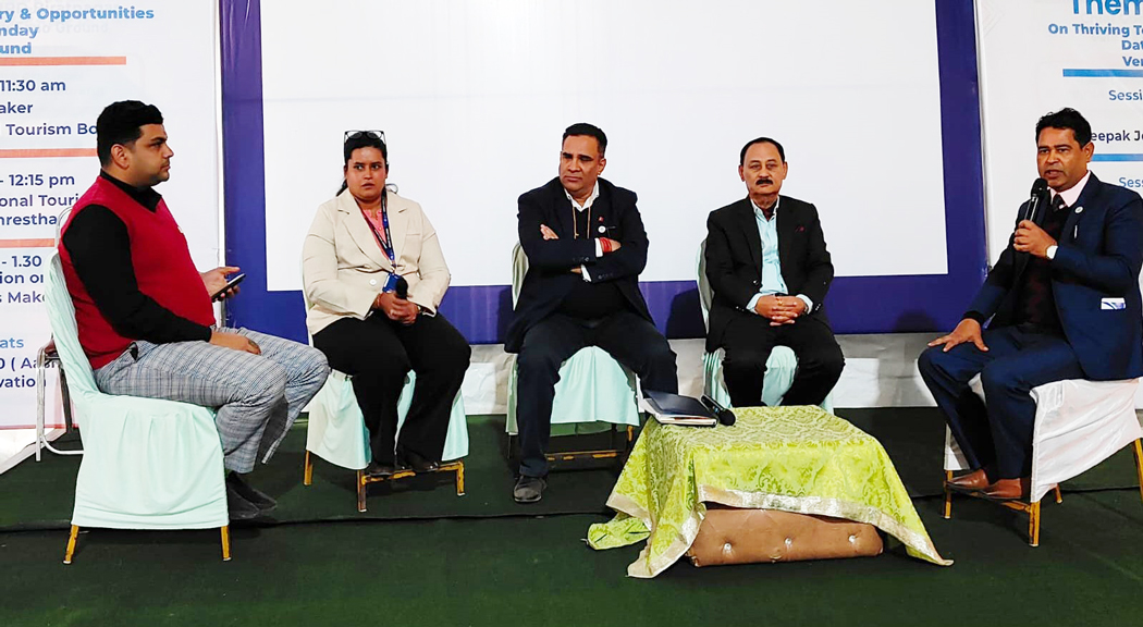 विराटनगर । विराट ट्रेड एक्स्पोमा हरेक दिन सञ्चालन हुँदै आएका थिमेटिक सेसनअन्तर्गत आज पर्यटन उद्योग, अवसर र सम्भावनाबारे छलफल भएको छ । फस्टाउँदै गएको पर्यटन क्षेत्रलाई कसरी दिगो र प्रभावकारी बनाउने भन्ने विषयमा सरोकारवालाबीच विचार विमर्श भएको हो ।