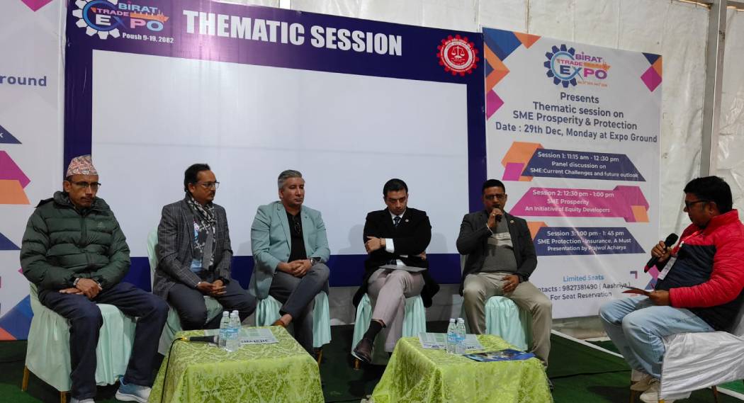 विराटनगर । विराटनगरमा जारी ‘विराट ट्रेड एक्स्पो’ अन्तर्गत साना तथा मझौला उद्योग (एसएमई) को समृद्धि र संरक्षणलाई केन्द्रमा राखेर विशेष थिमेटिक सेसन भएको छ ।