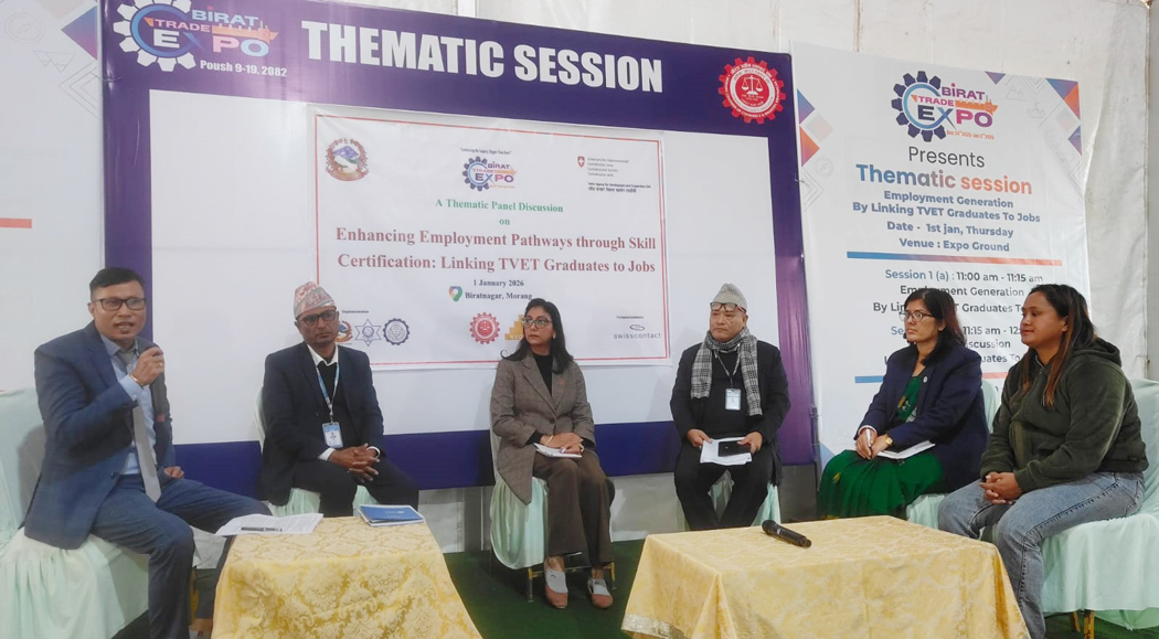 विराटनगर । मोरङ उद्योग व्यापार संघको आयोजनामा सञ्चालन भइरहेको विराट ट्रेड एक्स्पो अन्तर्गत आज ‘सीप प्रमाणीकरणदेखि रोजगारीसम्म’ विषयमा विशेष छलफल भएको छ । एक्स्पो अवधिभर उद्योग, व्यवसाय र श्रम बजारसँग सम्बन्धित विविध समसामयिक विषयमा दैनिक छलफल भइरहेका छन् ।