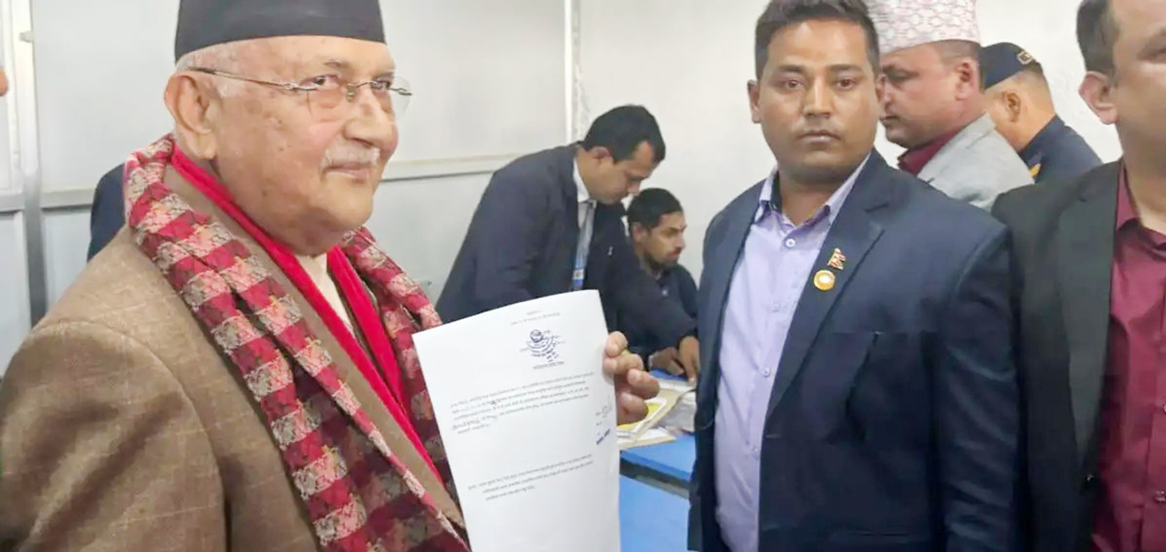 आगामी फागुन २१ गते हुने प्रतिनिधि सभा निर्वाचनका लागि ओलीले उम्मेदवारी दर्ता गराएका हुन् । यही क्षेत्रबाट ओली पटक-पटक निर्वाचन जित्दै आएका छन् ।