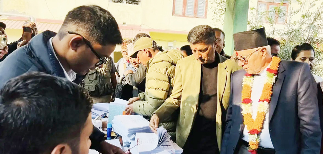 उनी मनोनयन दर्ताका लागि समर्थकसहित निर्वाचन अधिकृतको कार्यालय पुगेका थिए ।