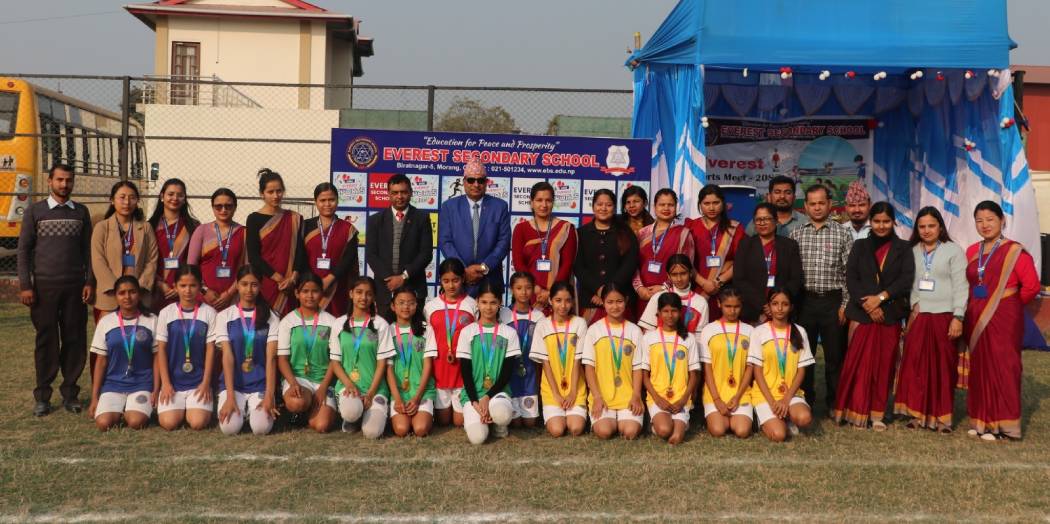विराटनगर । विराटनगर-५ स्थित एभरेष्ट माध्यमिक विद्यालयको साताव्यापी स्पोर्ट्स मिट सम्पन्न भएको छ । कक्षा समूह अन्तरगत भएको स्पोर्ट्स मिट विभिन्न स्पर्धाहरू हुँदै समापन भएको हो ।