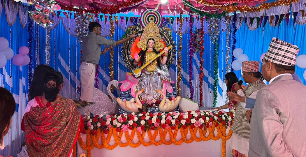 विराटनगर । विराटनगर-५ स्थित एभरेष्ट सेकेन्डरी स्कुलमा आज धुमधामका साथ वैदिक विधिद्वारा सरस्वती पूजा गरिएको छ । मन्टेश्वरी, सेकेन्डरी र कलेजमा छुट्टाछुट्टै मूर्ति स्थापना गरि सरस्वतीको पूजा गरिएको हो ।