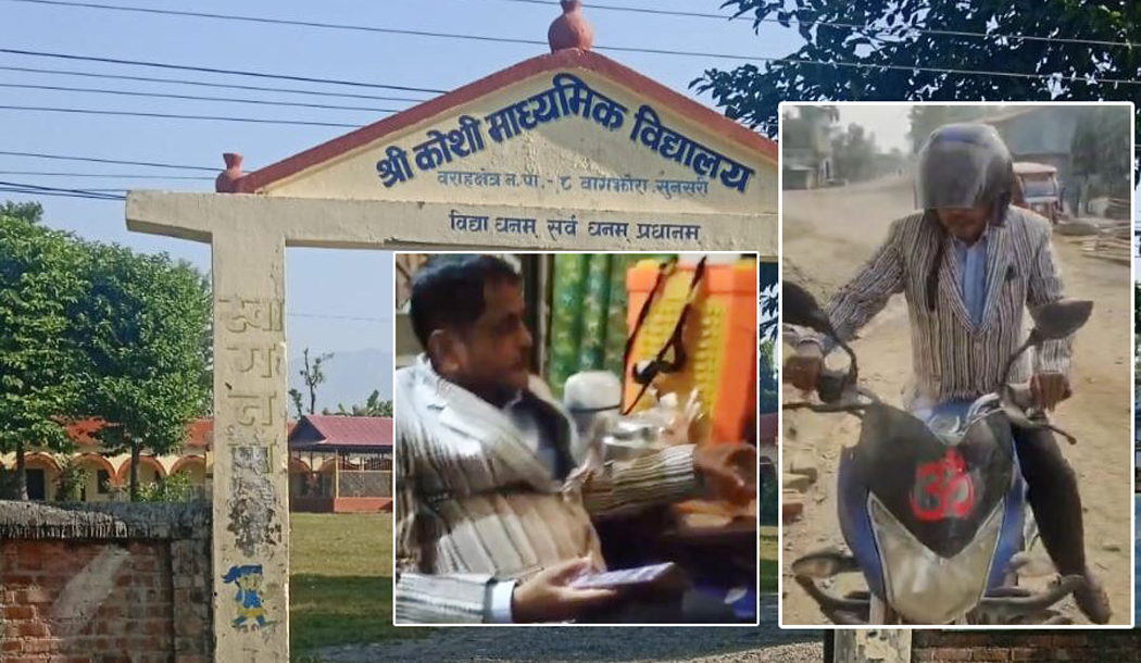 विराटनगर । सुनसरीको बराहक्षेत्र नगरपालिका-८ स्थित कोशी माध्यमिक विद्यालयका प्रधानाध्यापक विद्यालय समय र पोशाकमै रक्सी भट्टीमा भेटिएका छन् । सोमबार दिउँसो २ः२१ बजे बराहक्षेत्र-३ बीचपानेको एक होटलमा रक्सी पिउँदै गरेको अवस्थामा प्रधानाध्यापक बालकृष्ण अधिकारीलाई अभिभावकले भेटेका हुन् ।