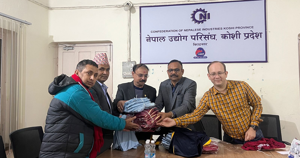 विराटनगर । नेपाल उद्योग परिसङ्घ कोशी प्रदेशले मोरङको रंगेली नगरपालिका-१ स्थित त्रिभुवन माध्यमिक विद्यालयलाई ३१ सेट जर्सी प्रदान गरेको छ ।