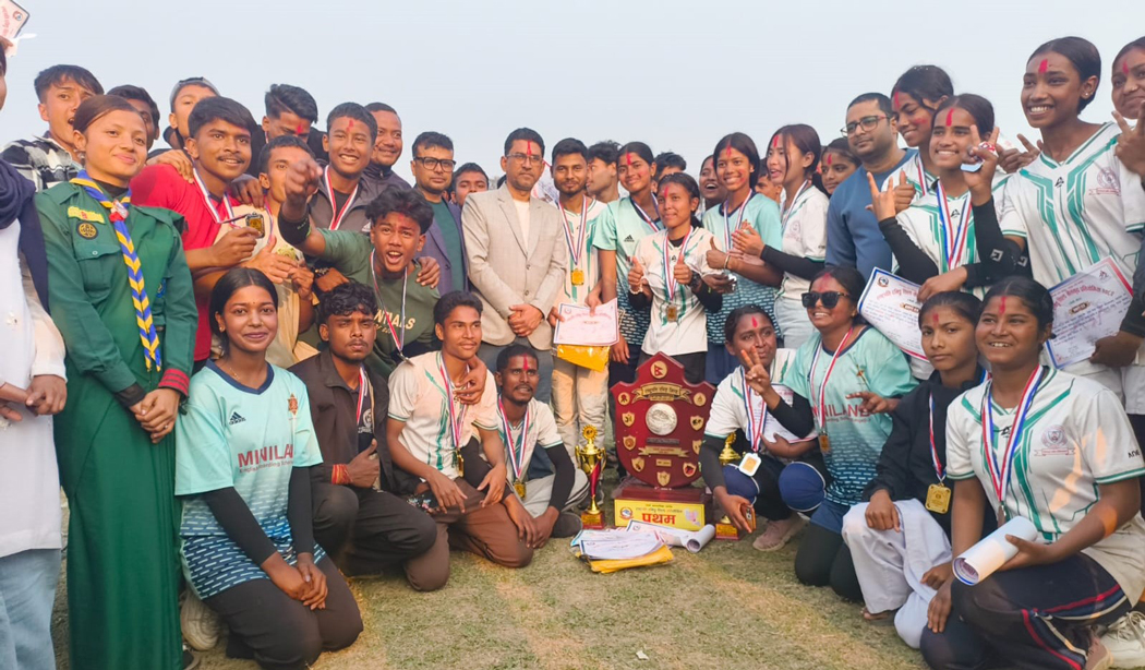 विराटनगर । मोरङको रंगेली नगरपालिका स्तरीय राष्ट्रपति रनिङ शिल्ड प्रतियोगिताको उपाधि मिनील्यान्ड इङ्लिस स्कुलले जितेको छ । मिनील्याण्डले ३२ अङ्कका साथ पहिलो स्थान प्राप्त गरेको हो ।
