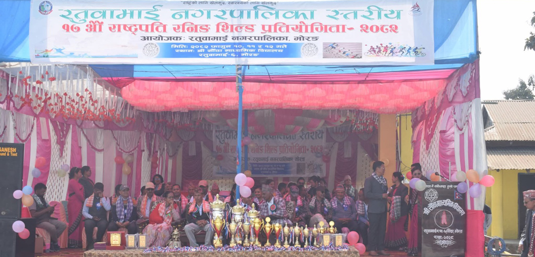विराटनगर । मोरङको रतुवामाई नगरपालिकामा राष्ट्रपति रनिङ शिल्ड प्रतियोगिता सुरु भएको छ । रतुवामाई नगरपालिका-६ स्थित सौँठा माध्यमिक विद्यालयमा प्रतियोगिता सुरु भएको हो ।