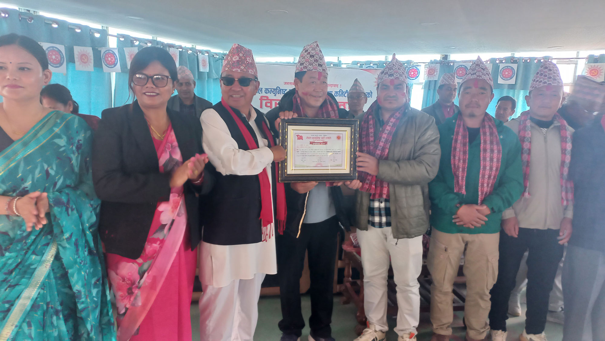 एमालेका चार वटै कमिटीका अध्यक्षसहित पदाधिकारीहरूलाई पार्टीका केन्द्रिय सदस्य एवं नव निर्वाचित प्रतिनिधि सभा सदस्य राजेन्द्र राई, केन्द्रिय सदस्य तारा तितुङ, प्रदेश उपाध्यक्ष टिकाराम चेम्जोङ, जिल्ला अध्यक्ष शिव आङ्ला लगायतले दोसल्ला ओढाएर प्रशंसापत्र प्रदान गरी सम्मानित गर्नुभएको छ ।