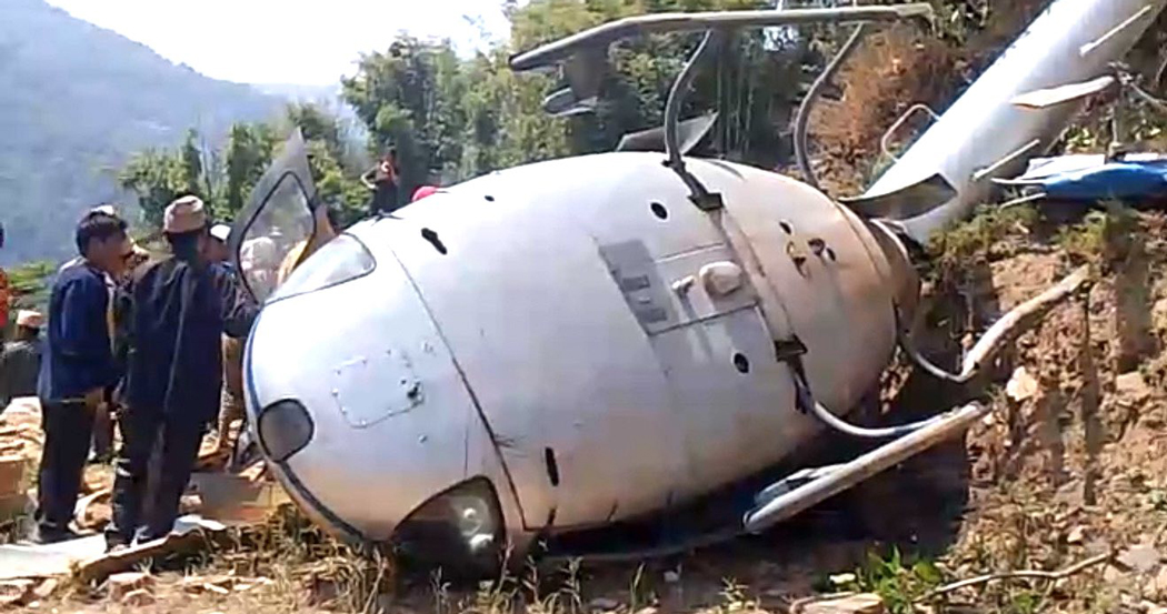 ‘हेलिकप्टरमा पाइलटसहित ५ जना सवार हुनुहुन्थ्यो’, उनले भने, ‘पाइलट र घाइतेलाई अर्को हेलिकप्टर बोलाएर काठमाडौं पठाइसकिएको छ ।’ दुर्घटनामा मानवीय क्षति नभएको उनले जानकारी दिए । पाइलटसहित अन्यको अवस्था सामान्य रहेको प्रहरीले जनाएको छ ।
