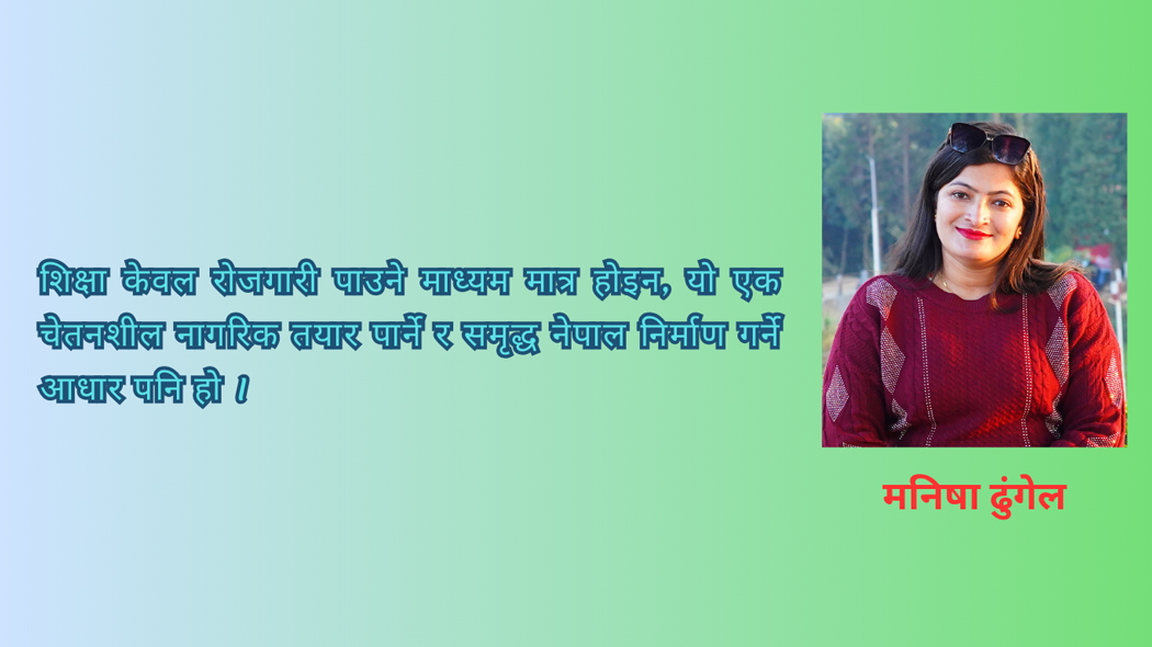 (लेखक लक्ष्मी माध्यमिक विद्यालय केराबारी मोरङमा कार्यरत छिन् ।)