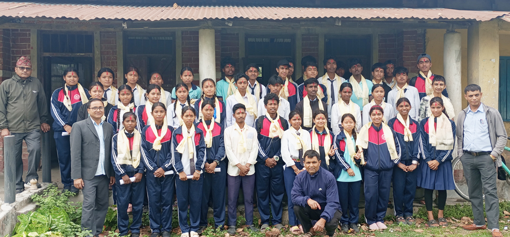 विराटनगर । मोरङको रंगेली नगरपालिका-१ स्थित त्रिभुवन माध्यमिक विद्यालय गोहीगाडाका कक्षा १० का ५० जना विद्यार्थीहरूको बिदाई गरिएको छ । चैत १९ गतेबाट हुने माध्यमिक शिक्षा परीक्षा (एसईई) मा सामेल हुने विद्यार्थीहरूको बिदाई गरिएको हो ।